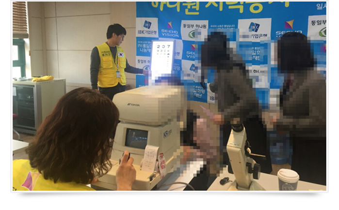 북한이탈주민의 정착지원사업의 일환으로 밝은 빛을 되찾아 남한사회를 밝게 보기 위한 마음을 담아 2014년 3월 하나원과 시력측정 및 교정용 안경을 제공하는 업무협약을 체결한 이래 정기적으로 안경지원봉사를 실천하고 있습니다. 이번 행사에서는 시호비전 전문 안경사 3명이 개인별 검안을 실시한 후 9명에게 돋보기를 즉석에서 전달하였으며, 또한 시력교정용