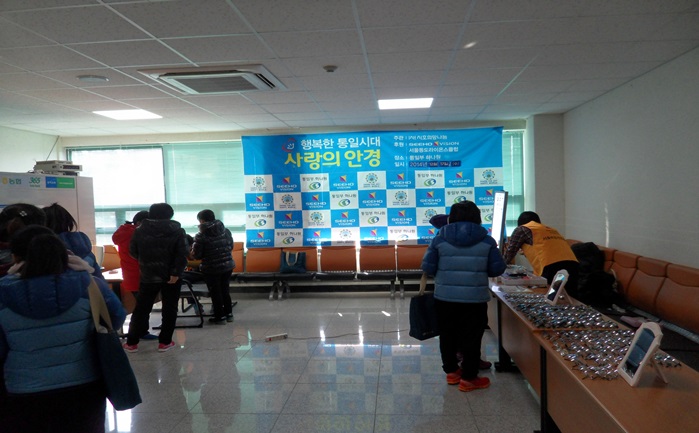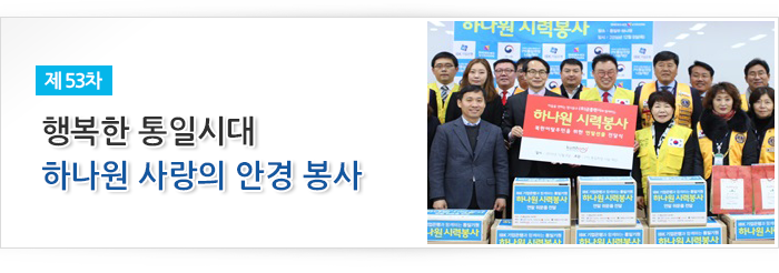 (사)통일희망나눔재단이 주관하고 시호비전그룹이 후원하여 2016년 12월 8일 하나원(북한이탈주민정착지원사무소)에서 입소 교육생 148명을 대상으로 제53차 안경지원 봉사활동을 실시하였습니다. 북한 이탈주민의 정착 지원 사업의 일환으로 밝은 빛을 되찾아 주기 위한 마음을 담아 2014년 3월 하나원과 시력 측정 및 교정용 안경을 제공하는 업무협약을 체결한 이래 정기적으로 안경 지원 봉사를 실천하고 있으며, 이번 행사에서는 시호비전 전문 안경사 5명이 개인별 검안 실시 후 40명에게 맞춤안경을 전달했습니다. 앞으로도 (사)통일희망나눔재단은 복지향상을 위한 다양한 복지나눔실천을 하도록 노력하겠습니다.