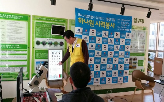 (사)통일희망나눔재단이 주관하고 시호비전그룹이 후원하여 2017년 3월 7일 하나원 북한이탈주민정착지원사무소)에서 입소 교육생 27명을 대상으로 제59차 안경지원 봉사활동을 실시하였습니다. 북한 이탈주민의 정착 지원 사업의 일환으로 밝은 빛을 되찾아 주기 위한 마음을 담아 2014년 3월 하나원과 시력 측정 및 교정용 안경을 제공하는 업무협약을 체결한 이래 정기적으로 안경 지원 봉사를 실천하고 있으며, 이번 행사에서는 시호비전 전문 안경사 3명이 개인별 검안 실시 후 9명에게 맞춤안경을 전달했습니다. 앞으로도 (사)통일희망나눔재단은 복지향상을 위한 다양한 복지나눔실천을 하도록 노력하겠습니다.
