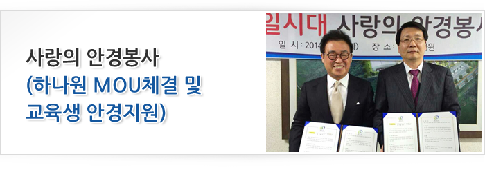 월 18일 하나원과 본원에서 시력 측정 및 교정용 안경을 향후 5년간 무상으로 제공하기 위한 업무협약을 체결하였다.