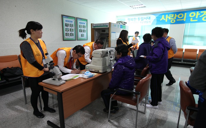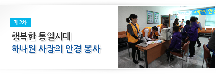 통일희망나눔재단이 주관하고 시호비전그룹이 후원하여 2014년 5월 08일 하나원(북한이탈주민정착지원사무소)에서 입소 교육생 79명을 대상으로 제 2차 안경지원 봉사활동을 실시했다.