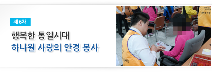 통일희망나눔재단이 주관하고 시호비전그룹이 후원하여 2014년 7월 3일 하나원(북한이탈주민정착지원사무소)에서 입소 교육생 70명을 대상으로 제 6차 안경지원 봉사활동을 실시했다.