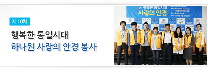 통일희망나눔재단이 주관하고 시호비전그룹이 후원하여 2014년 9월 23일 하나원(북한이탈주민정착지원사무소)에서 입소 교육생 39명을 대상으로 제 10차 안경지원 봉사활동을 실시했다.