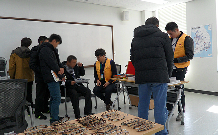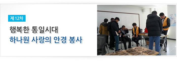 통일희망나눔재단이 주관하고 시호비전그룹이 후원하여 2014년 11월 14일 하나원(북한이탈주민정착지원사무소)에서 입소 교육생 49명을 대상으로 제 12차 안경지원 봉사활동을 실시했다.