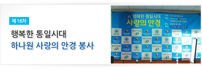 통일희망나눔재단이 주관하고 시호비전그룹이 후원하여 2015년 1월 15일 하나원(북한이탈주민정착지원사무소)에서 입소 교육생 73명을 대상으로 제 16차 안경지원 봉사활동을 실시했다.