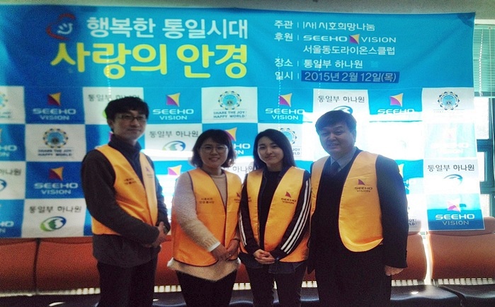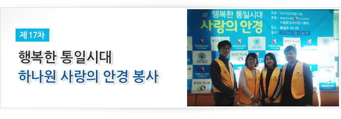 통일희망나눔재단이 주관하고 시호비전그룹이 후원하여 2015년 2월 12일 하나원(북한이탈주민정착지원사무소)에서 입소 교육생 74명을 대상으로 제 17차 안경지원 봉사활동을 실시했다.