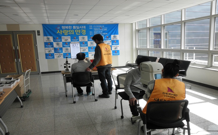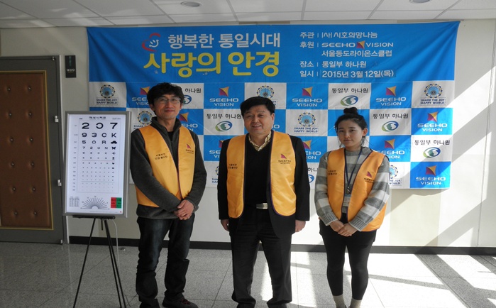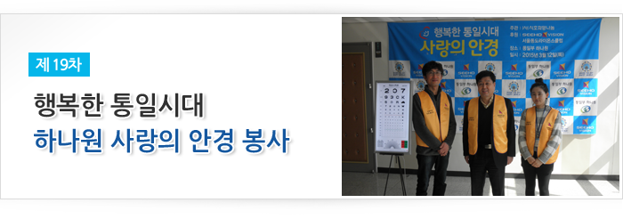 통일희망나눔재단이 주관하고 시호비전그룹이 후원하여 2015년 3월 12일 하나원(북한이탈주민정착지원사무소)에서 입소 교육생 47명을 대상으로 제 19차 안경지원 봉사활동을 실시했다.
