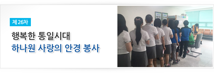 통일희망나눔재단에서는 시호비전그룹의 후원으로 2015년 7월 23일 하나원(북한이탈주민정착지원사무소)을 방문하여 제 26차 안경지원 봉사활동을 실시했다.