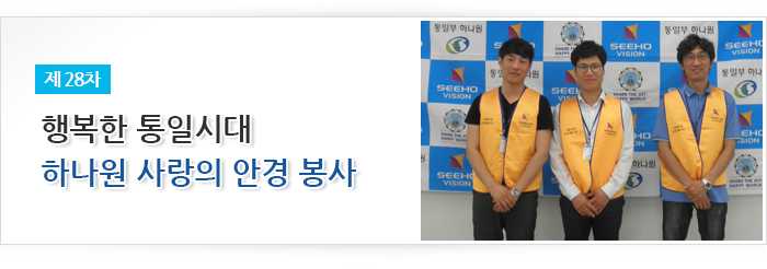 통일희망나눔재단이 주관하고 시호비전그룹이 후원하여 2015년 8월 25일 하나원(북한이탈주민정착지원사무소)에서 입소 교육생 27명을 대상으로 제 28차 안경지원 봉사활동을 실시했다.